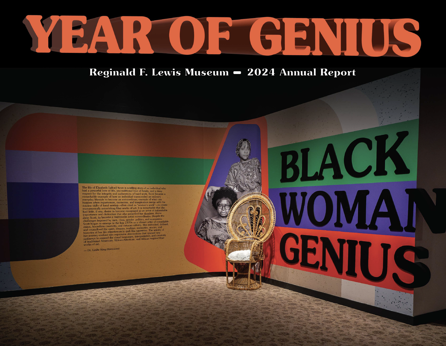 As we moved through fiscal year 2024, the genius of the sleeping giant that is Reginald F. Lewis Museum of Maryland African American History and Culture, began to awaken. This year we saw exquisite art and artistry on display, presenting Vision & Spirit African American Art: Works from the Bank of America Collection, Afro-Futurist Manifesto: Blackness Reimagined, in partnership with Galerie Myrtis, as well as acknowledging the storied history of African Americans in healthcare through our exhibit Blacks In White, sponsored by Kaiser Permanente and supported by MedStar. Our exhibit Black Woman Genius; Elizabeth Talford Scott Tapestries of Generations, celebrated the genius of the artist, in partnership with the Elizabeth Talford Scott Community Initiative, the 2023-24 Exhibition Development Seminar (EDS) capstone project for MICA’s undergraduate Curatorial Studies Concentration. These beautiful and informative exhibits were one way the Lewis Museum met its mission of documenting, interpreting and preserving the complex experiences, contributions and culture of Black people in Maryland.